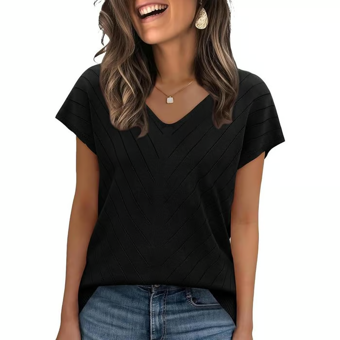 The cap short sleeves, V-neck, crochet and ribbed hem create a timeless silhouette that will elevate your womens tops collection, whether it's business casual outfits for women, teacher clothes wear or a weekend outings.